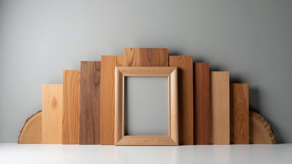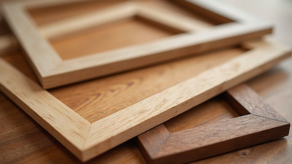 Sie sollten die Haltbarkeit und Feuchtigkeitsbeständigkeit des Holzes beurteilen, um sicherzustellen, dass Ihre Rahmen ihre Integrität über die Zeit bewahren, insbesondere unter variierenden Umweltbedingungen.