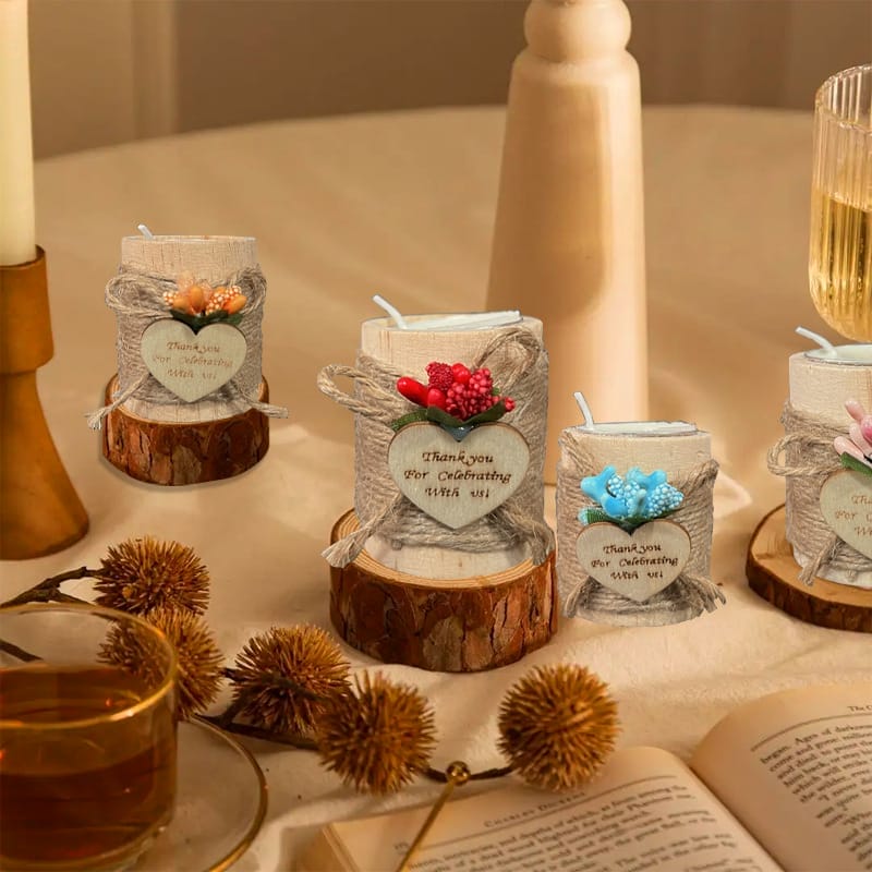 - Elegante Gestaltung: Verziert mit kunstvollen Details wie Kunstblumen, einem herzförmigen Holzschild mit Dankestext und Juteband, eignet sich dieser Teelichthalter perfekt als Geschenk oder für besondere Events.
