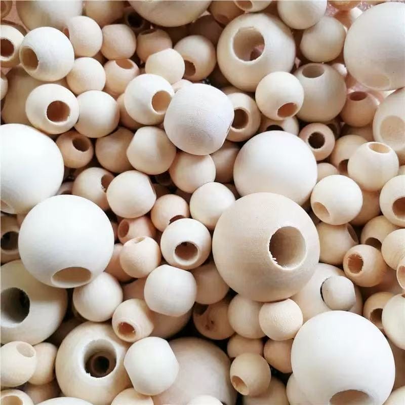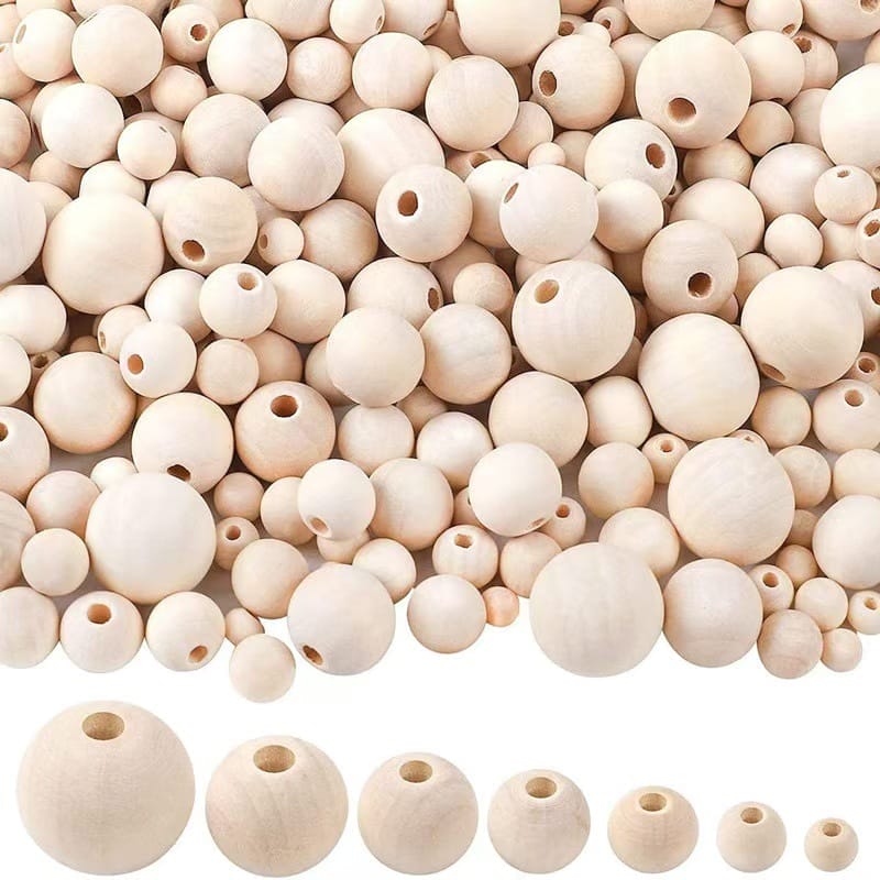 Holzperlen Natur Großhandel – runde handgefertigte Perlen (4–50 mm)
