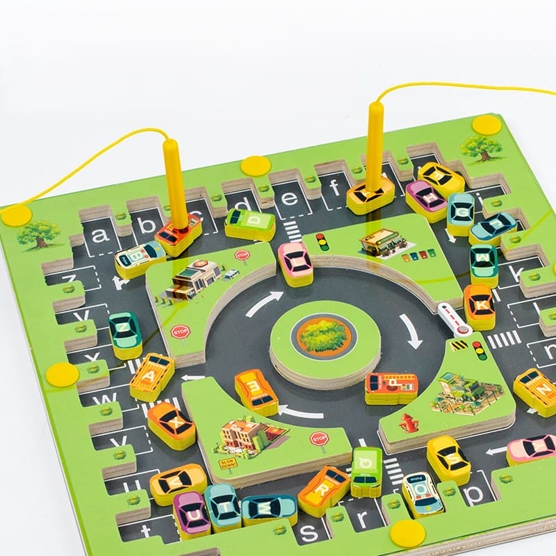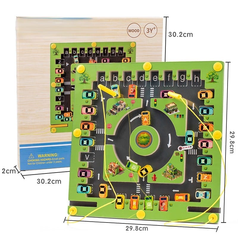 Kurzbeschreibung Unser hochwertiges Holz-Magnet-Labyrinth verbindet spielerisches Lernen mit sicherem, langlebigem Design. Kinder führen farbenfrohe Autos mit Magnetstift durch ein Parkhaus-Labyrinth und ordnen dabei Groß‑ und Kleinbuchstaben zu. Ideal für Kindergärten, Spielwarengeschäfte und Wiederverkäufer, die pädagogischen Mehrwert mit überzeugender Qualität anbieten möchten.
